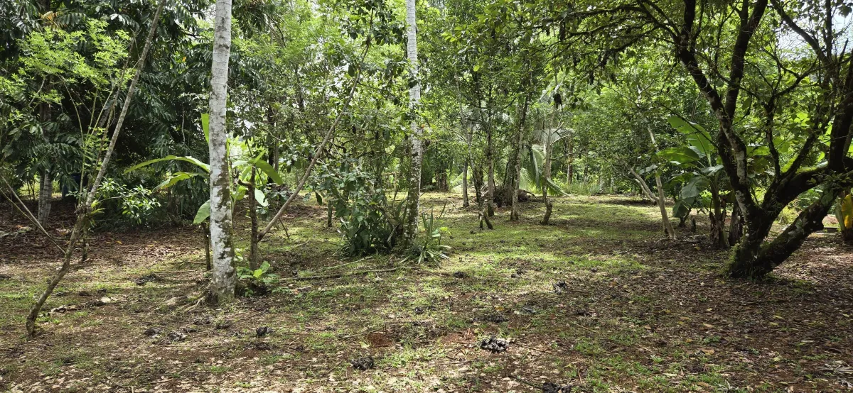 —providing both ecological value and a passive income stream. The remaining land is a thriving mosaic of abundance, home to over 300 cacao trees and hundreds of other fruit trees